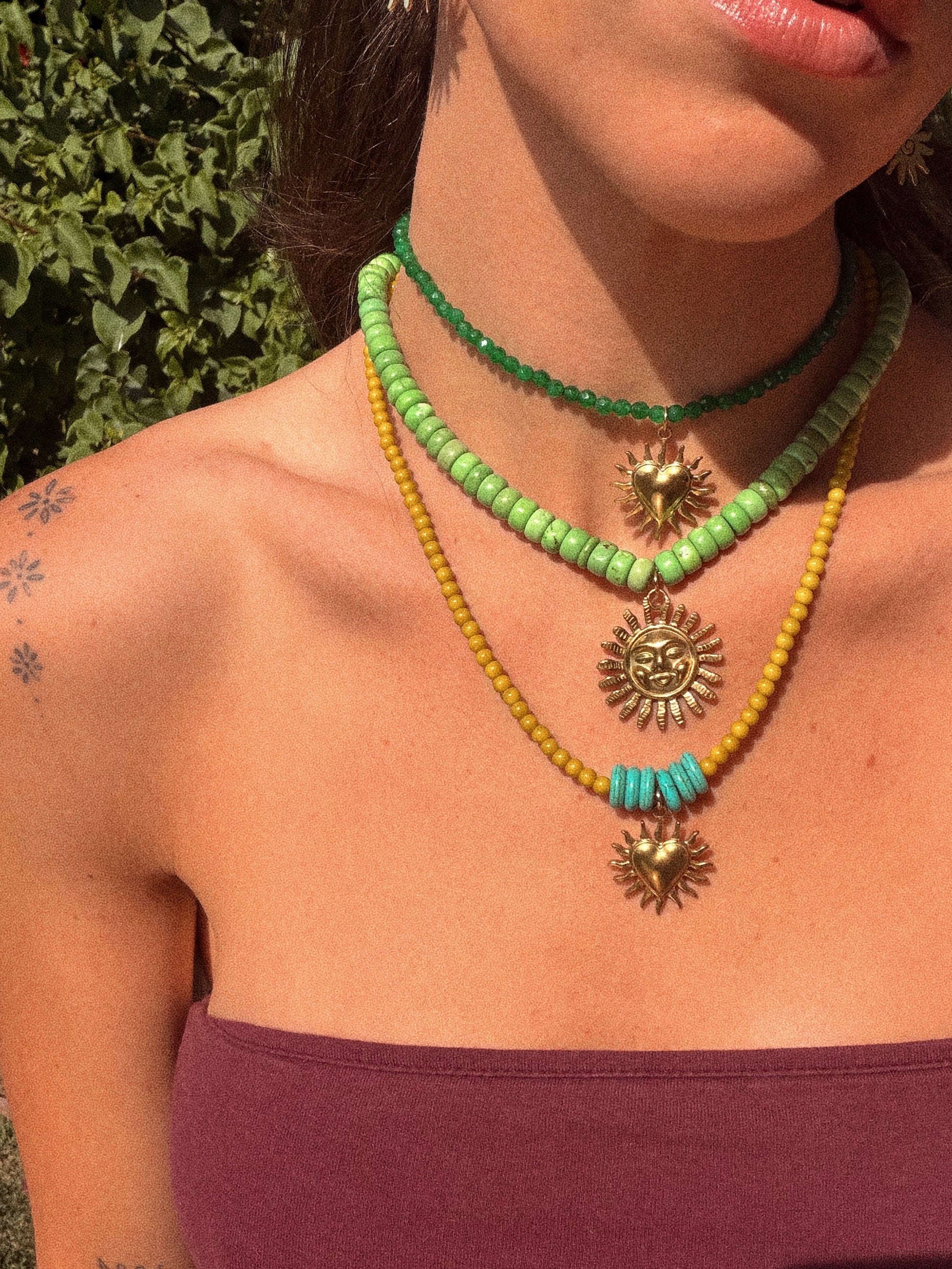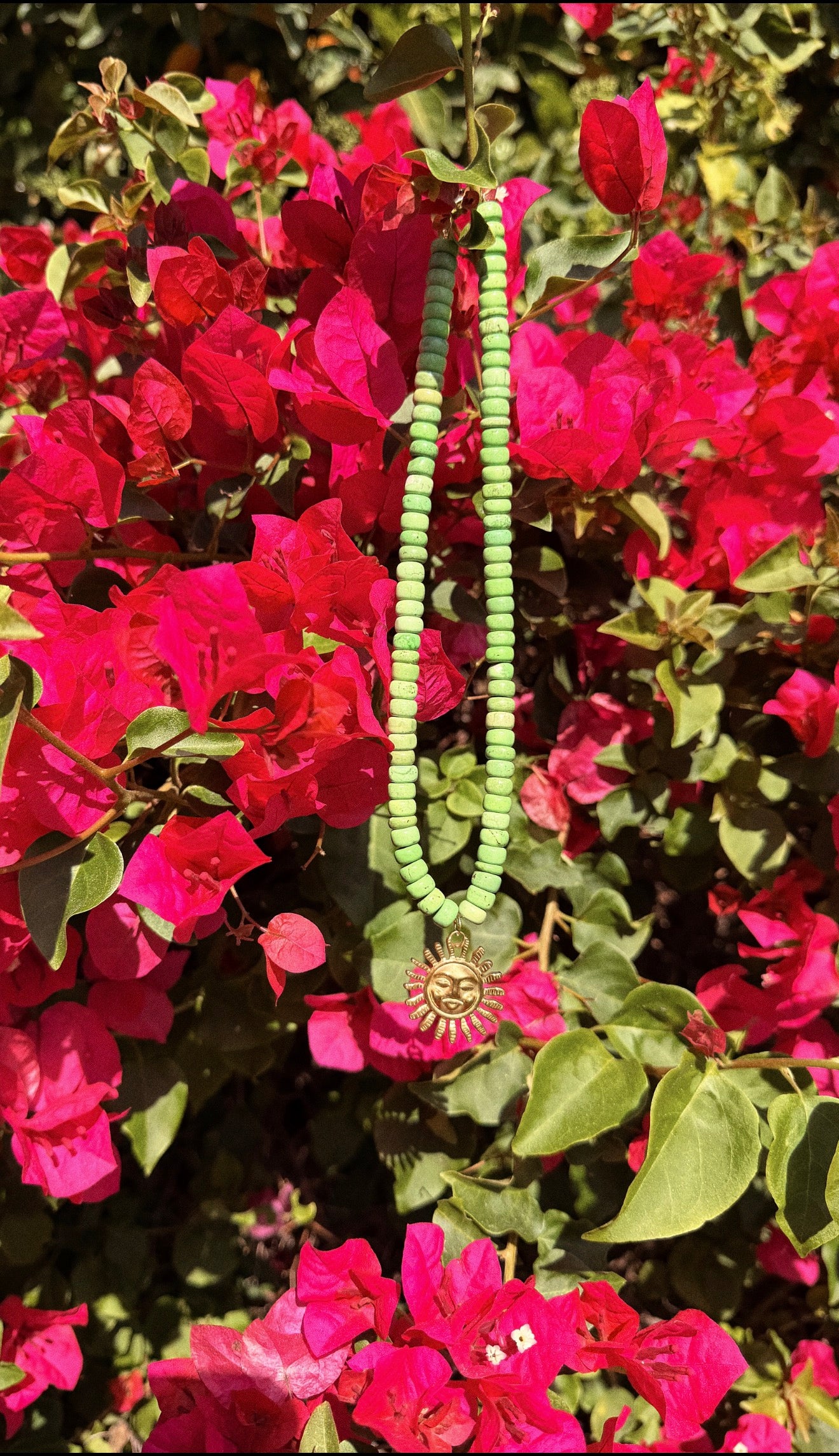 ✹ lush green california howlite beads, adorned with a gorg sun face charm detail